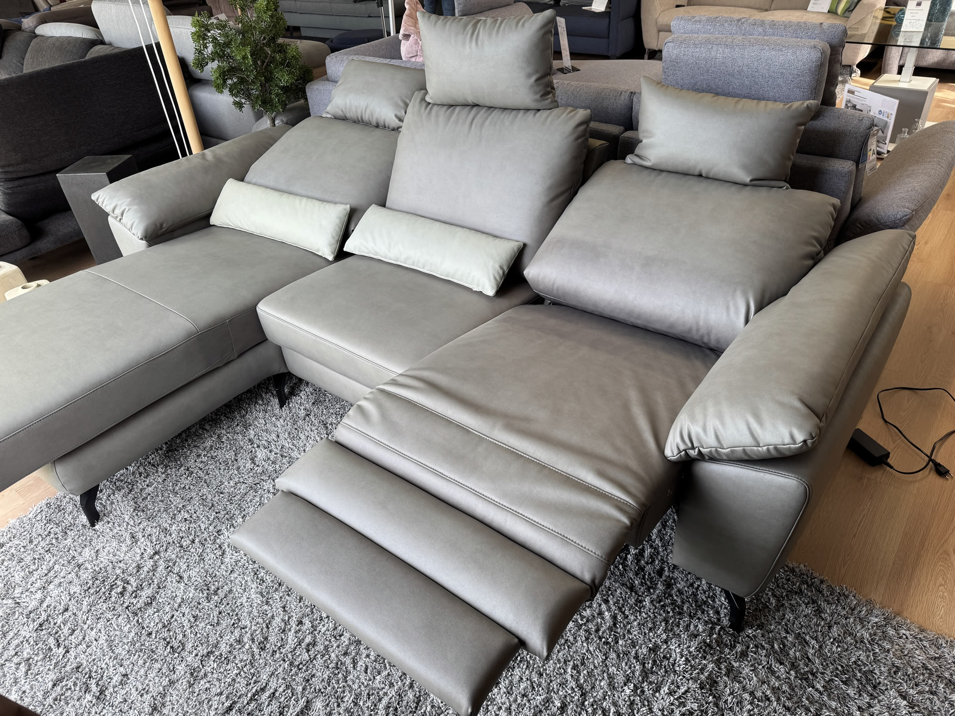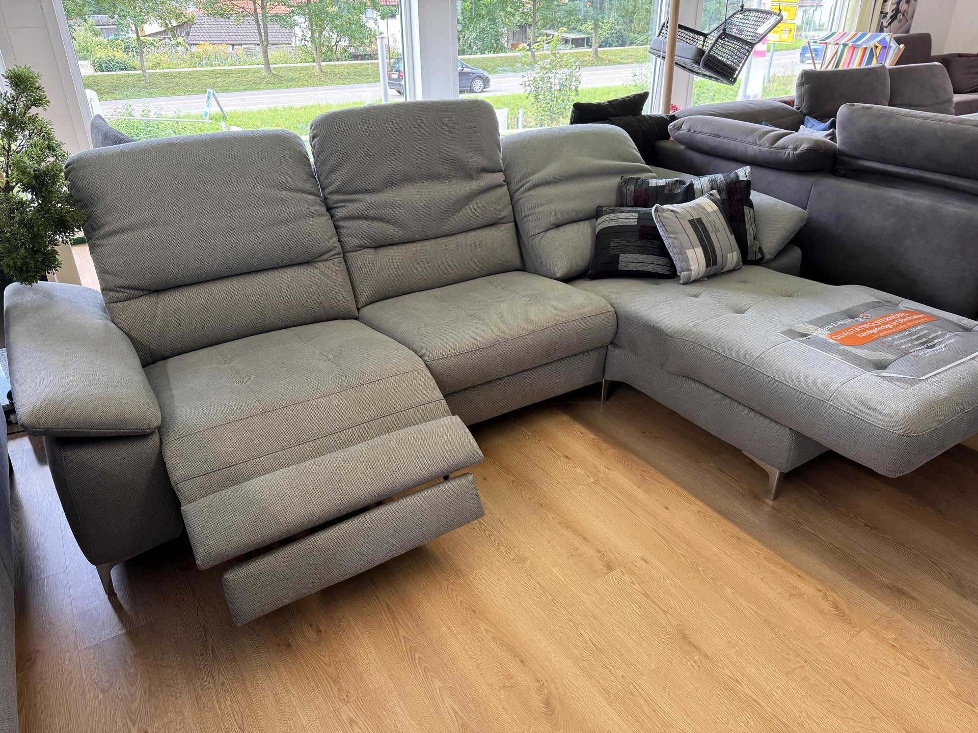 Polstergarnitur TL 2369 Bezug: family care style grey PG 4 Polsterung soft Metallfuß chrom glänzend 506 SH: 47 1,5-Sitzer medium(4589) Armlehne B links, klappbar (29cm) Kopfteil, Sitz und Rücken motorisch(555) Sitzraster 74cm B: 103; T: 112-176; ST: 56; H: 84-106; SH: 47 1,5-Sitzer medium ohne Armlehne(4576) Sitzraster 74cm Kopfteil manuell B: 74; T: 112; ST: 56; H: 84-106 Longchair(6063) Armlehne B rechts, klappbar ( 29cm) Motorische Verlängerung(516) Kopfteil manuell verstellbar Sitzraster 74cm B: 103; T: 184-202; ST:128-136;H: 84-106 Gesamtstellmaß: 280x184-202cm Von links nach rechts davorstehend! Gesamtpreis 5.062 ,-€
