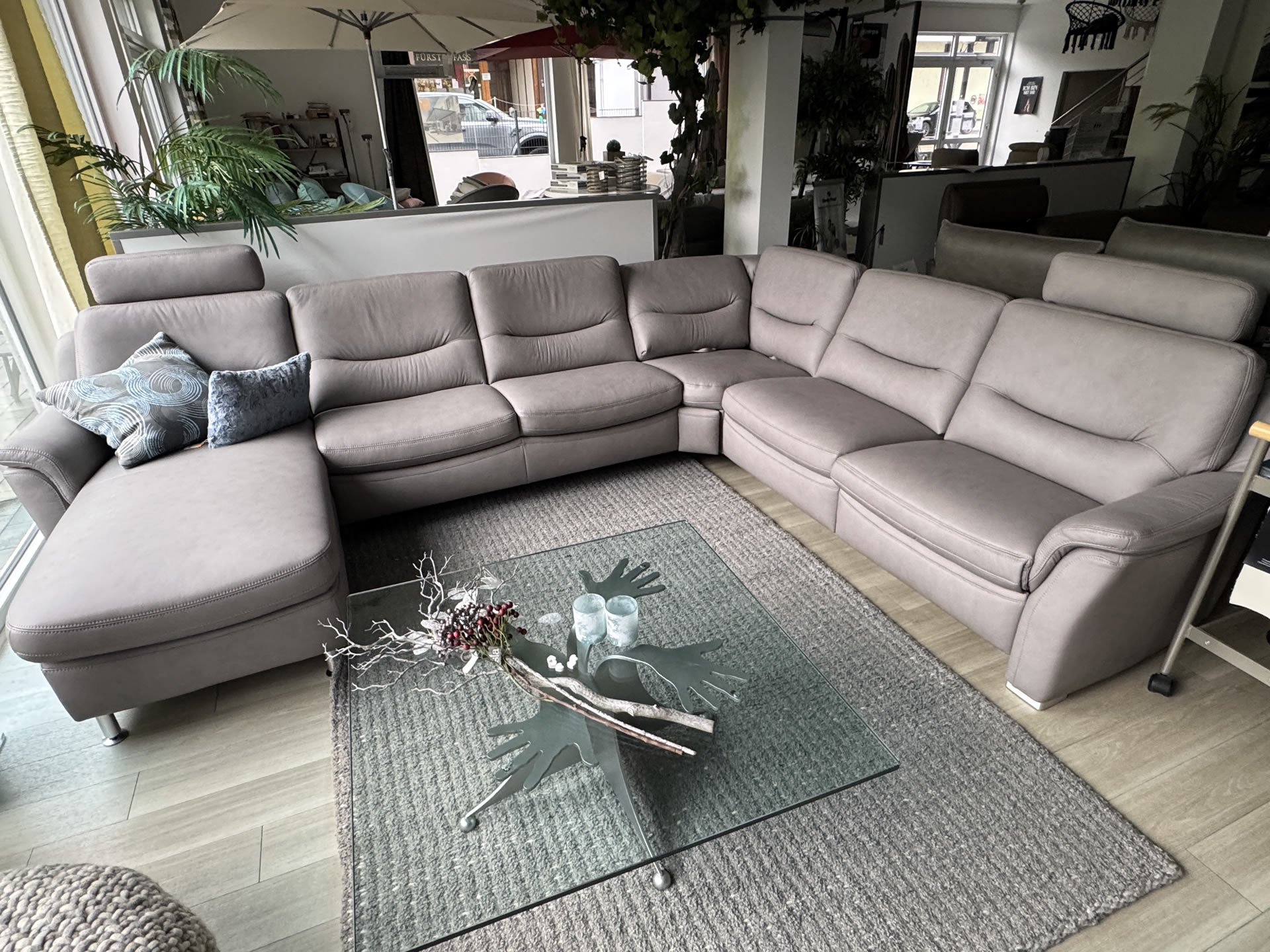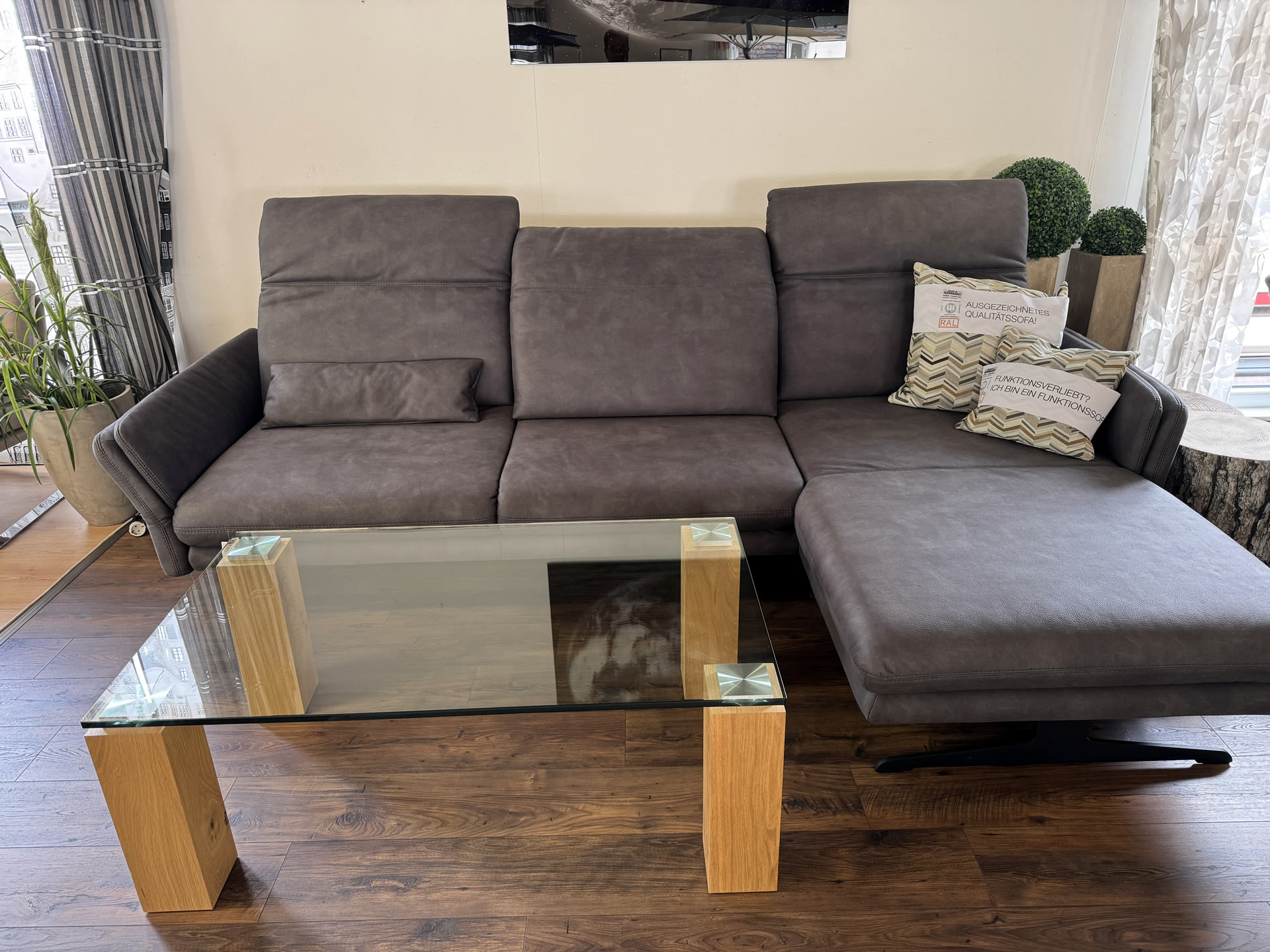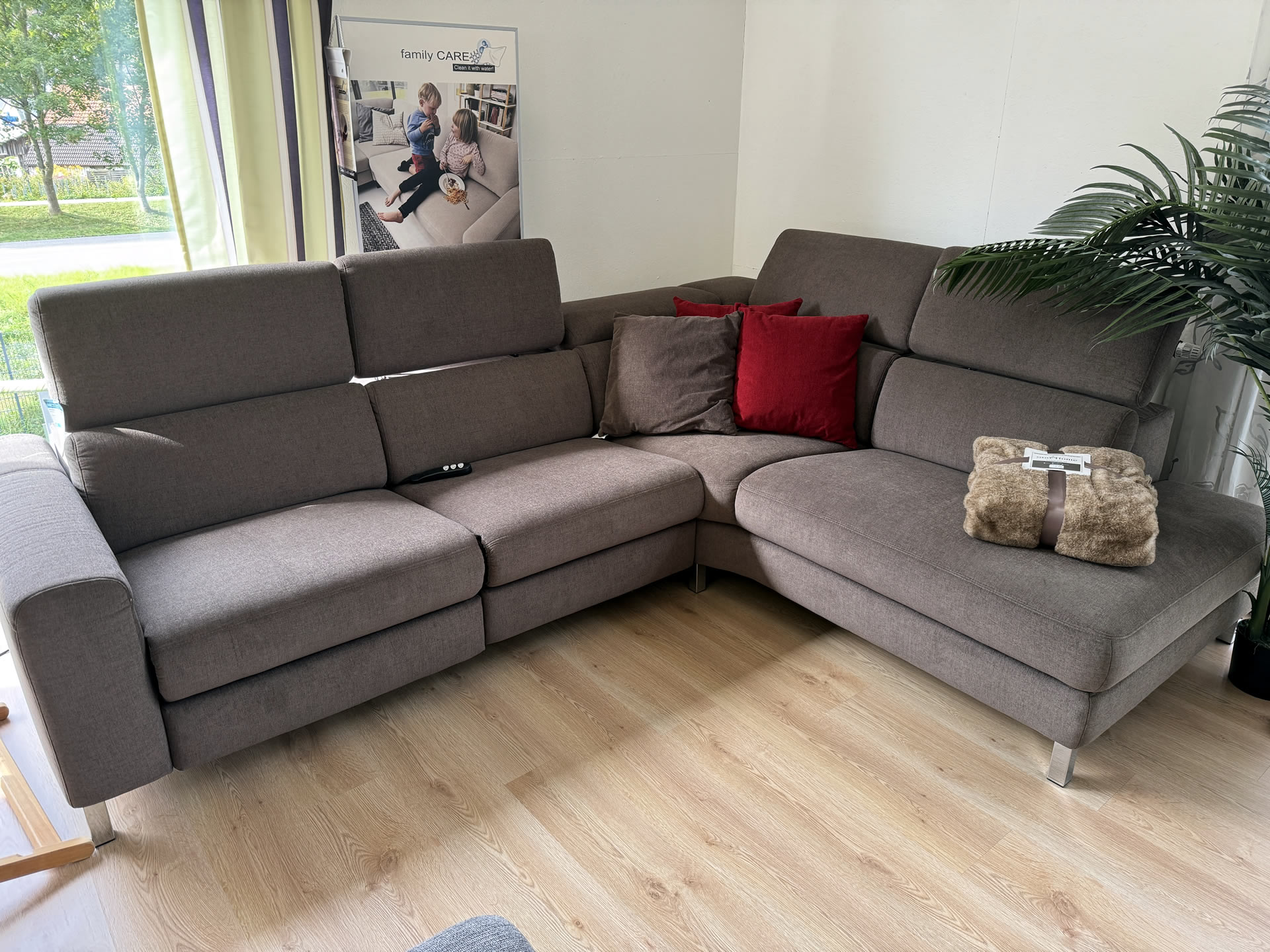 Polstergarnitur TL 1537 Fuß: Metall (chrombeschichtet) 728 Sitz: Wellenfedern und Pur-Schaum Bezug: Easy Care 131 mocca, PG 8 1,5-Sitzer medium ,Armlehne li 858,-€ Relax und Kopfstütze motorisch 856,-€ B95; T109 (-172) cm;SH47;ST56 Gesamt: 1.714,-€ 1,5-Sitzer medium 648,-€ Relax und Kopfstütze motorisch 856,-€ B74; T109 (-172) cm;SH47;ST56 Gesamt: 1.504,-€ Umbauecke medium rechts 1.659,- € B117; T225 cm;SH47 Spitzkissen 50x50; easy care je 102,-€ 306,-€ Gesamtstellmaß: ca. 286 x 225 cm Von links nach rechts, davorstehend Gesamtpreis 5.183,-€ Abverkauf 3.599,-€