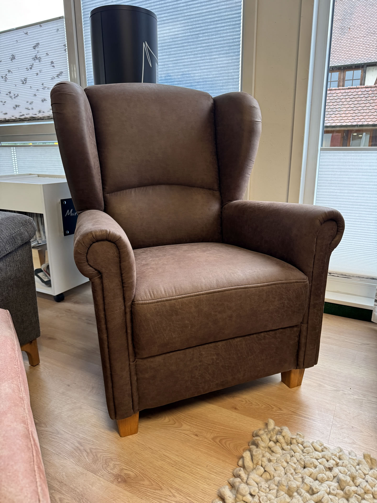 Ohrenbackensessel TE 3103 Bezug: Manila schoko Fuß: Eiche natur Sitz: Federkern Sitzhöhe: 46 cm B81;T88;H110; ST53cm