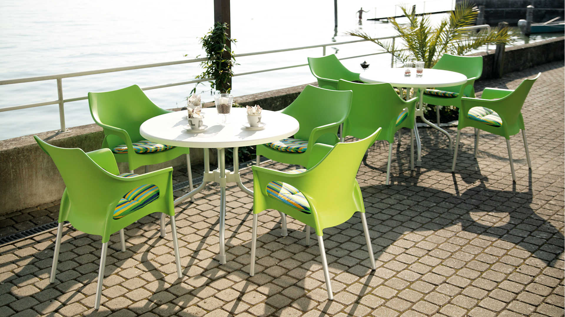 „ Wir präsentieren auf einer Fläche von 200.-qm im Innenbereich und saisonal 350qm im Außenbereich über 14 verschiedene führende Markenhersteller im Bereich Gartenmöbel. Die Produktpalette erschließt sich über Tischgruppen, Loungemöbel, Liegen- und Relaxsessel bis zu Strandkörben. Vertreten sind dabei alle Outdoor geeigneten Materialien wie Edelstahl, Aluminium, Keramik, hochwertiges Kunststoff- und Schnurgeflecht, hochwertige Kunststoffspritzmöbel, HPL-Material sowie Teak- und sonstige Harthölzer für den Außenbereich.