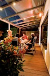 Optimale Kombination von Wetter- und Sonnenschutz durch verglaste Dachfläche und direkt auf Dachkonsole
